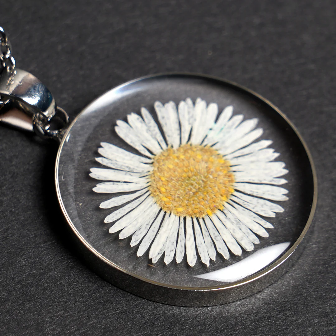Material - Resin , Real Flower , Stainless steel bezel & Chain.